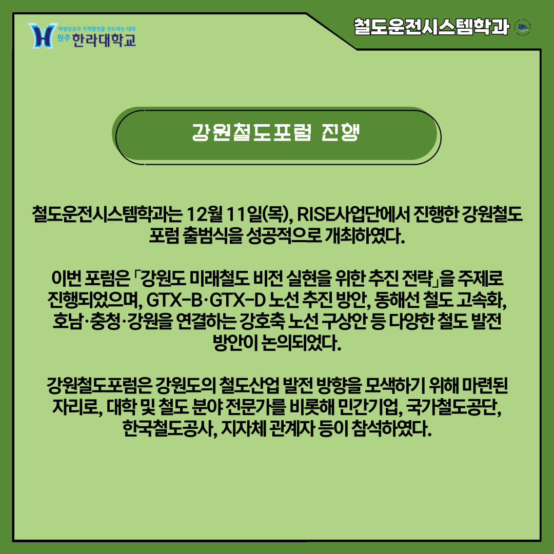 안녕하세요. 라이즈 철도포럼 관련 카드뉴스 입니다.
