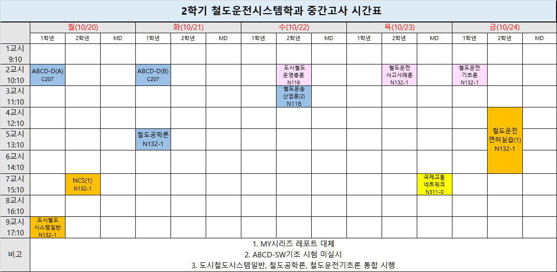 2025학년도 2학기 중간고사 시간표를 공유드립니다.